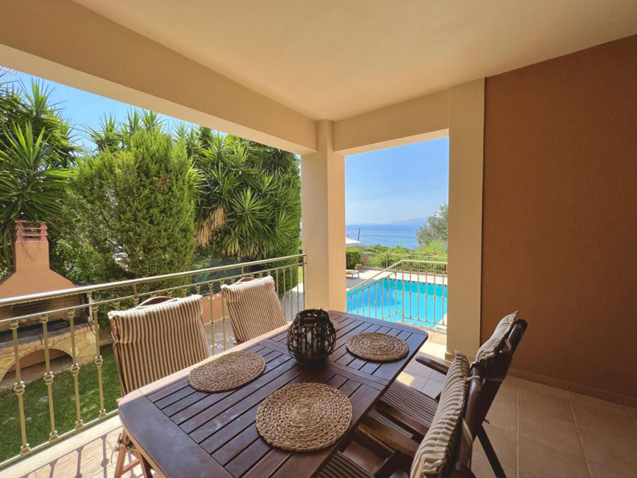 Η βίλα διαθέτει ιδιωτικό πάρκινγκ, προσφέρει θέα στο Ιόνιο και απέχει μόλις 1 χλμ. από την παραλία του Λουρδά.