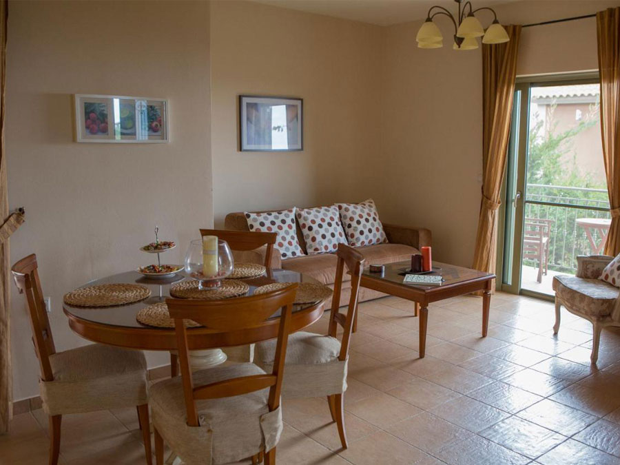 Το ισόγειο περιλαμβάνει μοντέρνα κουζίνα με τραπεζαρία και καθιστικό, ενώ οι μπαλκονόπορτες οδηγούν σε πλήρως επιπλωμένο εξωτερικό χώρο φαγητού. Υπάρχει επίσης μπάνιο στο ισόγειο. Στον επάνω όροφο υπάρχουν δύο υπνοδωμάτια, καθένα με δικό του μπαλκόνι -το ένα με διπλό κρεβάτι, το άλλο με δύο μονά- καθώς και ένα μπάνιο.